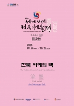 <전북 서예의 맥> 특별전 올해로 15회째를 맞은 세계서예전북비엔날레의 전시행사로 전북 서예의 역사를 느낄 수 있는 <전북 서예의 맥>이 지난 회에 이어, 우리 지역 사립미술관인 미술관 솔에서 전북 지역 작고 작가를 통해 서예사를 조망하는 뜻 깊은 전시회가 열린다.16세기 이후 전북 서예의 맥을 잇는 선현 유묵 35점을 선보임으로써, 전북...