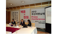 - 3월13일 서울 태평로클럽에서 2012 부산비엔날레를 미리 알리는 기자간담회가 있었다. 부산비엔날레사무국 이상섭 사무국장의 사회로 이두식 운영위원장의 인사, 본 전시를 맡은 로저 M. 뷔르겔 전시감...
