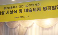 - "월간 미술세계 창간 30주년 맞이 제9회 미술세계 시상식 및 미술세계 명감발행 설명회"가 1월4일 지하철 명동역 부근 동보성에서 1시부터 행사가 있었다. 미술세계 강세환 상무의 사회로 개회사에 이어 ...