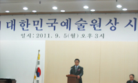 - 제56회 대한민국예술원상 시상식이 9월5일 오후 3시부터 예술원에서 있었다. 시상은 개식에 이어 * 국민의례-국기에 대한 경례, 애국가 생략, * 시상(부상 5,000만원)은 권순형예술원 회장에 의해 문학...