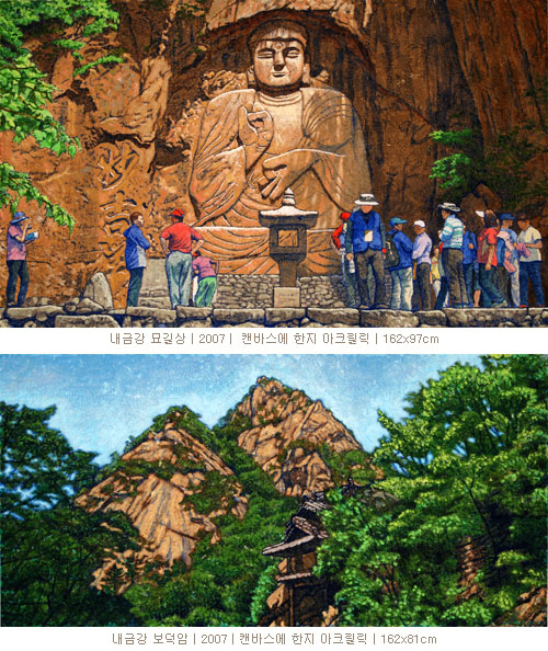 내,외금강으로 이루어진 금강산을 사진으로만 접할 수밖에 없다가 외금강에 발을 디딘 후에는 그가 시도때도 없이 금강산에 찾아들었던 것은 모두에게 알려져 있다. 동해항에서 배를 타고 떠나던 금강산여행이 버스를 타고 떠나는 여행이 된 최근까지 외금강을 드나들던 때로부터 다시 5년이 걸려 작가는 내금강에 이르렀다. 2007년에 북한은 비록 비용을 더 많이 부담해야 하지만 내금강 일부를 남한의 관광객에게 공개한 것이다. 10년을 넘게 기다려온 금강산 답사 이후 내금강에 이르기까지 다시 5년이 걸렸으니 꿈에서 그리던 곳에서 외양을 돌다가 그 안에 들어가는 단계를 밟아야 했던 작가의 금강산 여행과정은 구도적 시간의 경과를 보여준다.