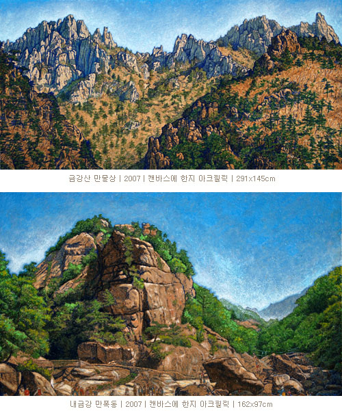 금강산을 그려온지 15년째, 이제서야 작가는 60여년 만에 자태를 드러낸 내금강에 이르렀다. 작가는 어느 날 ‘우연히’ 텔레비전 화면에 비친 갈 수 없는 곳 금강산의 자태를 보고 빠져들었다고 했다. 그리고는 사진집을 보고, 자료 필름을 보며 직접 가보지 못한 금강산을 그려내었다. 접근 방식으로만 보자면 ‘몽유금강’이랄까.