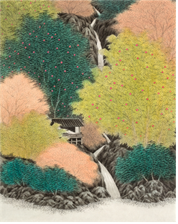 김민주, <사유산수>, 장지에 먹과 채색, 53x45 cm, 2016